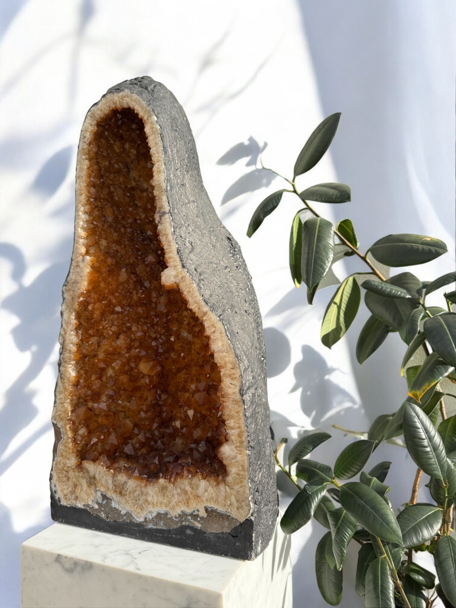 Our citrine free form pillars are of the highest crystal quality and composed entriely of natural citrine. Much citrine on the market is man made where the quartz goes through chemical processing to obtain the yellow citrine colour, however, this is not the case for our citrine pillars. Citrine is known to be associated with positivity and optimism and is often used to assist in manifesting wealth and opportunities. It is believed to bring the following benefits: