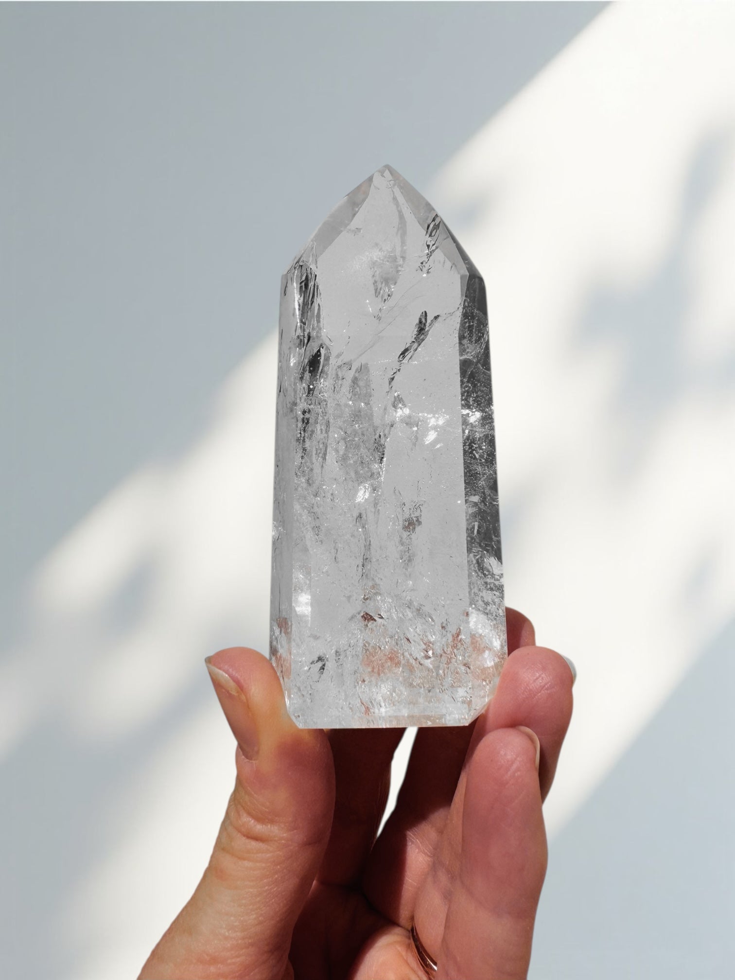 Clear quartz is also known as rock crystal. It is the most powerful healing stone able to work on any and all conditions and is specifically use to amplify energy from other stones. Clear quartz should be cleansed before use and can be done by leaving it in salt for a few hours before rinsing and using it and storing on selenite. Clear quartz is said to: