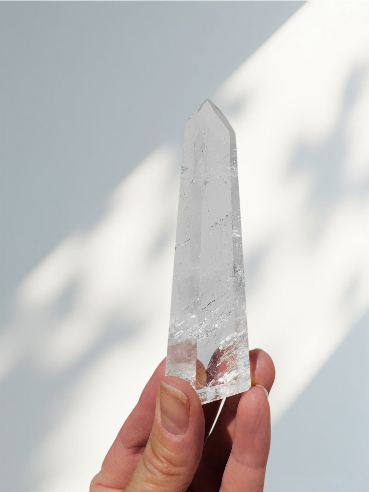 Clear quartz is also known as rock crystal. It is the most powerful healing stone able to work on any and all conditions and is specifically use to amplify energy from other stones. Clear quartz should be cleansed before use and can be done by leaving it in salt for a few hours before rinsing and using it and storing on selenite. Clear quartz is said to: