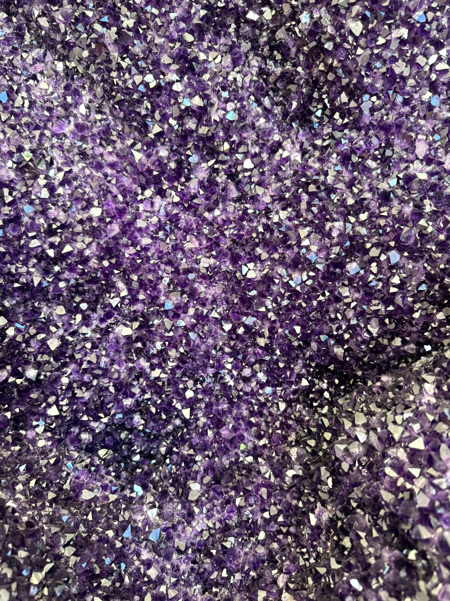 Fe³+) that have been exposed to trace amounts of natural gamma radiation, will allow iron to lose an electron and change in colour to purple. If you look closely at amethyst crystals, you can probably see that the tips of the crystal are generally a darker purple than the bases - caused by the iron mix in the water changing as the crystal slowly grows.