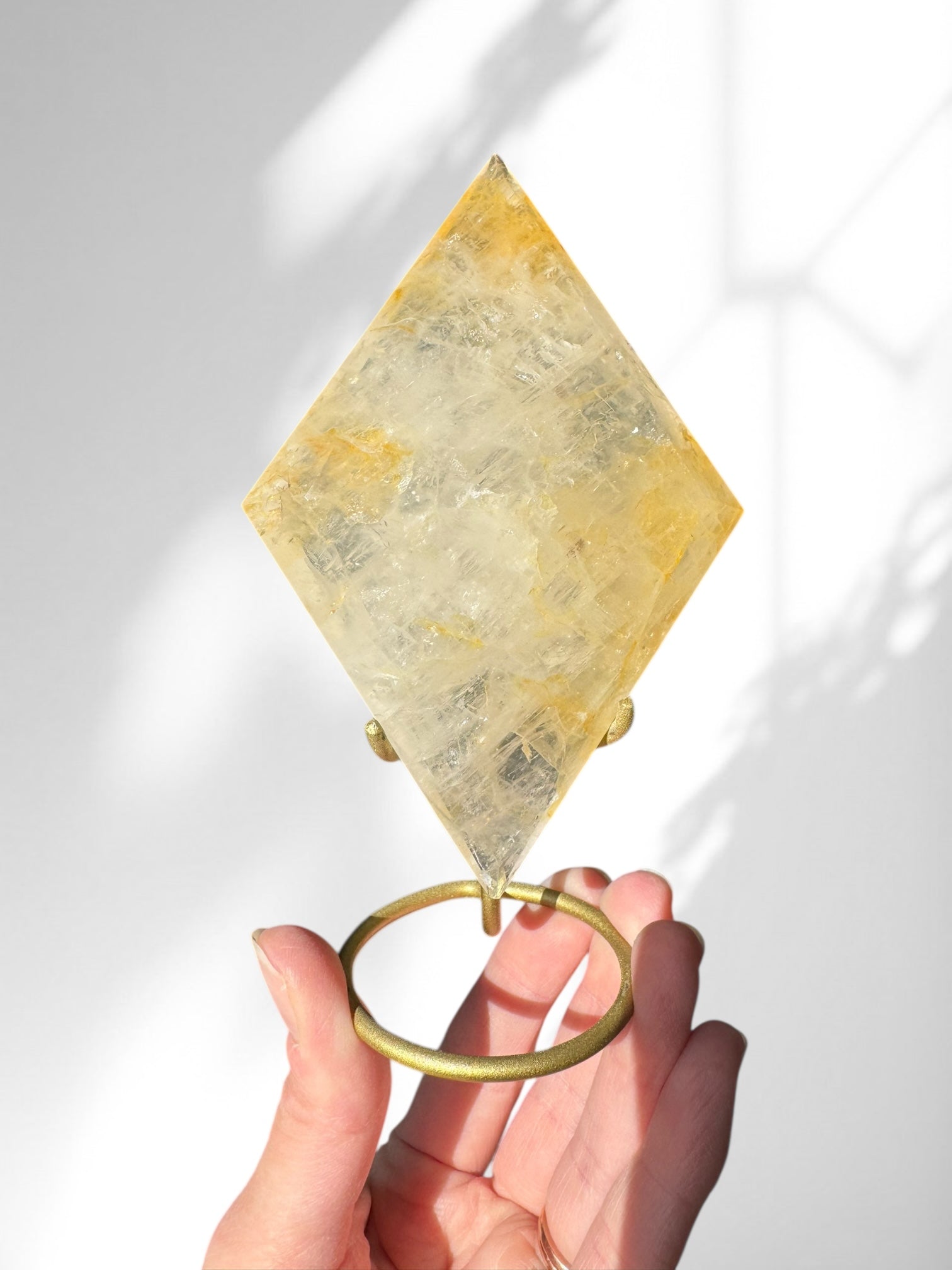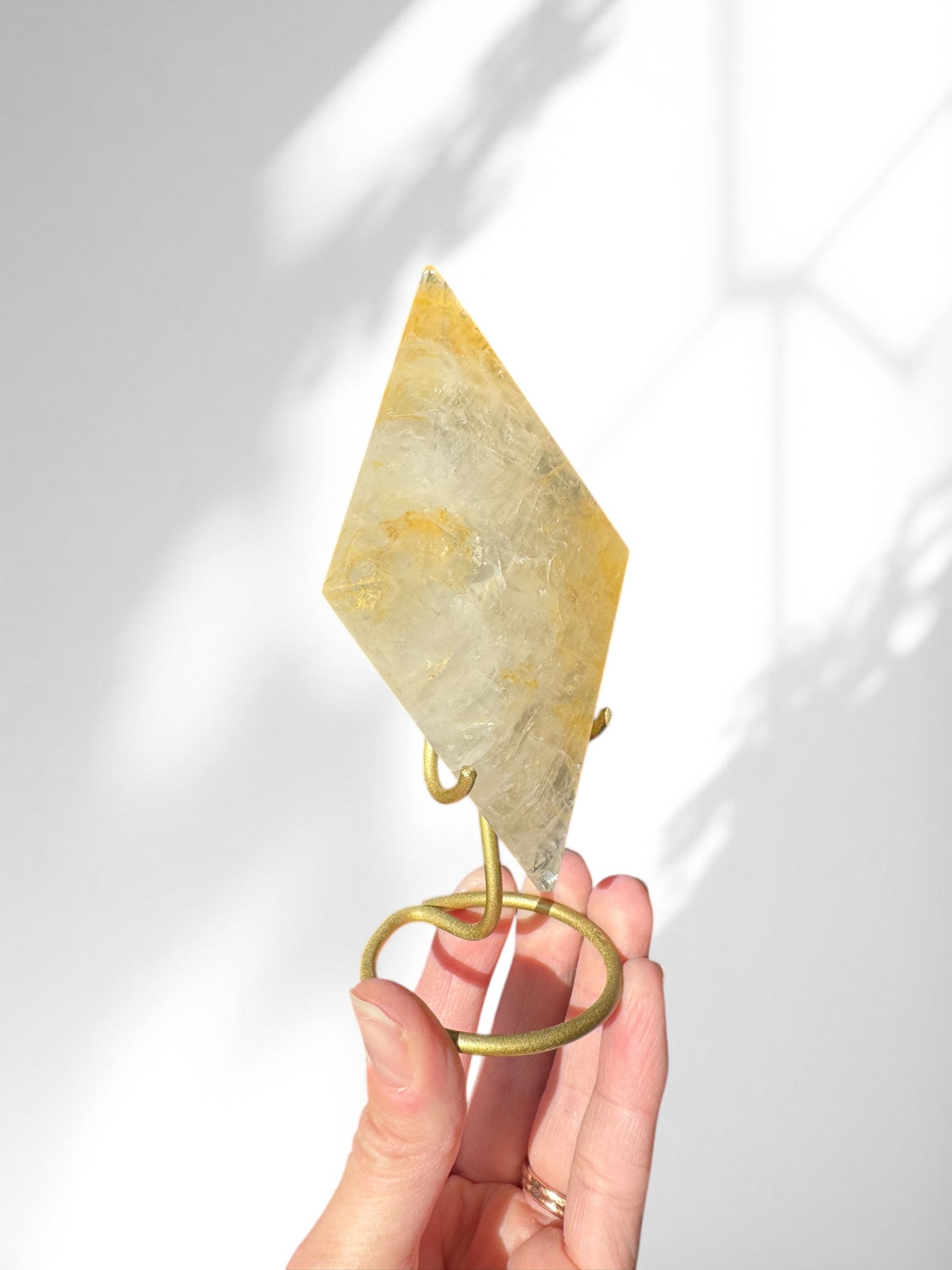 The golden healer crystal is a variety of quartz that contains trace amounts of iron inclusions, commonly formed in igneous rocks (or volcanic rocks) as magma cools. It can also less commonly be found and formed in sedimentary and metamorphic rocks. The quartz crystals form inside rocks as silicon dioxide crystallises as it cools within the rock. T