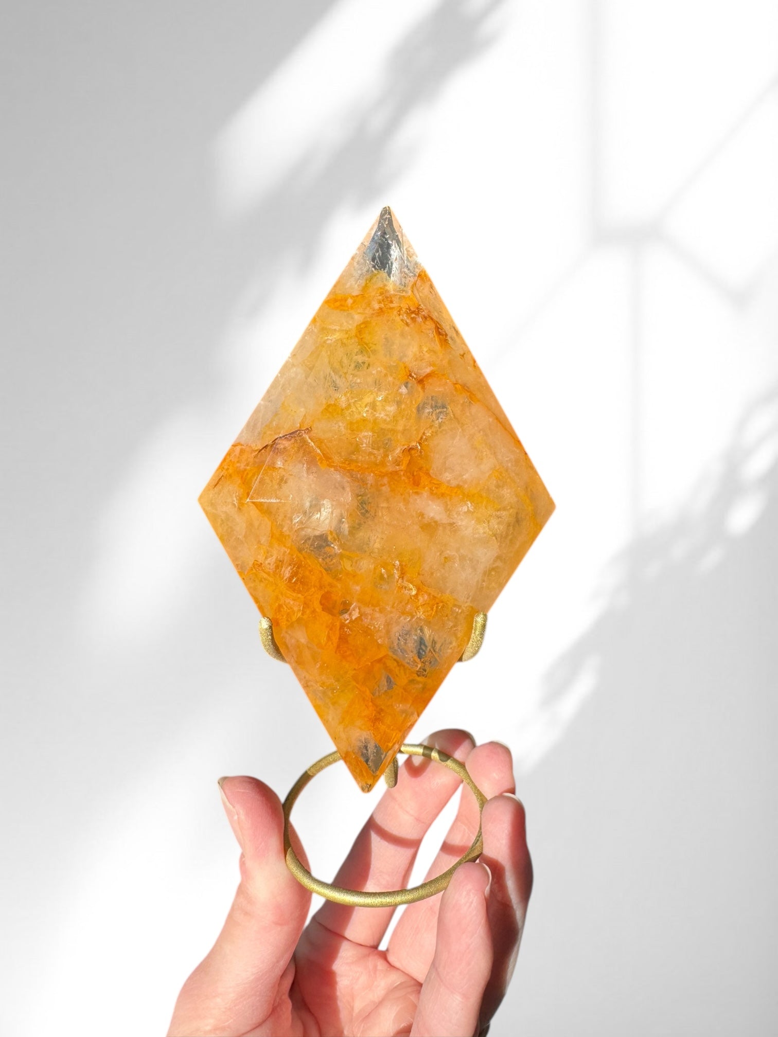 The golden healer crystal is a variety of quartz that contains trace amounts of iron inclusions, commonly formed in igneous rocks (or volcanic rocks) as magma cools. It can also less commonly be found and formed in sedimentary and metamorphic rocks. The quartz crystals form inside rocks as silicon dioxide crystallises as it cools within the rock. T