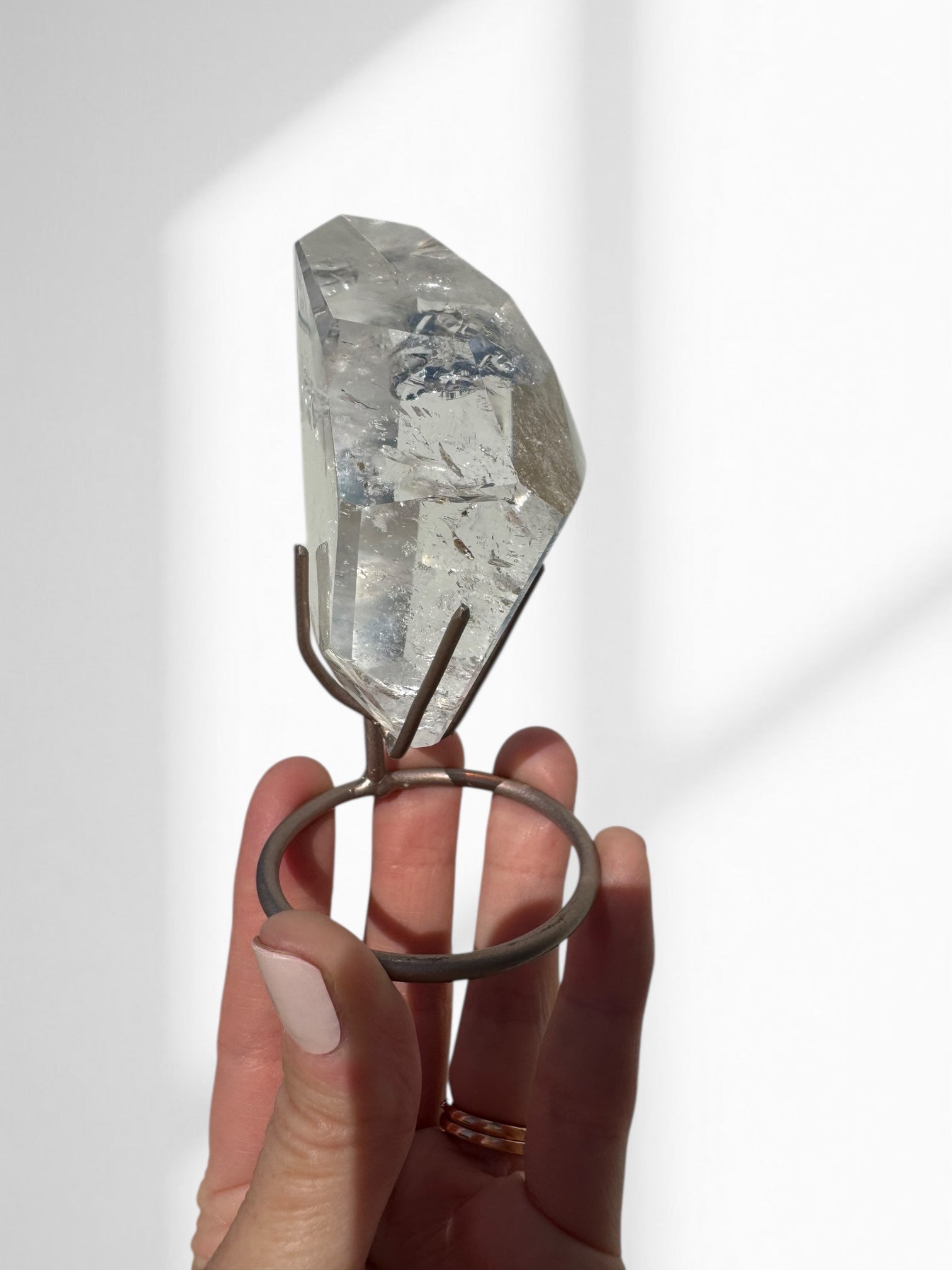 Clear quartz is also known as rock crystal. It is the most powerful healing stone able to work on any and all conditions and is specifically use to amplify energy from other stones. Clear quartz should be cleansed before use and can be done by leaving it in salt for a few hours before rinsing and using it and storing on selenite. Clear quartz is said to:
